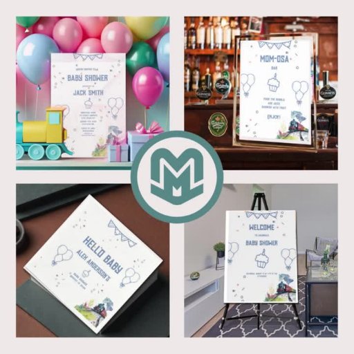 Train Blue Balloons Boy Whimsical Baby ShowerDesignt von Max Marshall