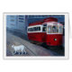 Malerei der Tram und des Hundes.