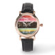 Uhr, Vintage Männeruhr mit schwarzem Lederarmband