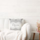Ein fantasievoller Blick. Die inspirierende Nachricht "Dream" erscheint in grauer Schrift auf einem weichen Design in wasserfarbigen Tönen von Licht bis mittelgrau . Das Design allein ohne Worte erscheint auf der Rückseite des Kissens.