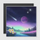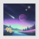 Bringen Sie mit dieser traumhaften Fantasielandschaft eine Touch des Kosmos in Ihren Alltag. Ein leuchtender lila Planet und eine strahlende Sternschnuppe leuchten über einem ruhigen Fluss, umgeben von Lavendelfeldern und Narzissen. Dieses Kunstwerk verbindet die Schönheit der Natur mit dem Wunder des Universums und schafft eine friedliche, aber magische Atmosphäre. Dieses Design ist perfekt für T - Shirt, Telefonzellen, Zuhause-Dekor und Accessoires geeignet und inspiriere Ruhe, Fantasie und Träume.