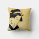 Geisha, die unten in weichem rustikalem Gelbem und schwarz schaut