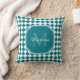 Trendy Aquamarin und White Checked Mit Monogramm N Kissen