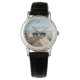 Uhr, Klassische Damenuhr mit schwarzen Lederarmband