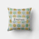 Passen Sie dieses Kissen mit Ihrem eigenen Namen oder Text an - oder entfernen Sie den Text für Ihr individuelles Kissen. Dieses Design zeichnet sich durch runde Fingerabdruck-Kreisfarben aus, die in Form von Farbtupfern aus Strandglas in goldblaugrüner aquamariner Bronze in elegantem, modernem Muster auf einem hellen Hintergrund dargestellt sind.