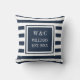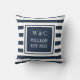 Trendy Monogram Navy Blue White Strip Kissen