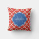 Trendy Red Quatrefolie Blue Monogram und Name Kissen