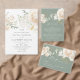 Modern stylish sage wedding invitation with watercolor gold greenery and ivory roses, modern calligraphy. Classy and elegant, simple and modern invitation.