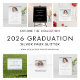 Trendy Silver Glitzer Welcome Graduation Party. Elegantes Drehbuch mit Swashes und Imitate Glitzer Ränder für dieses moderne Design.