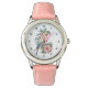 Kinderuhr aus Edelstahl mit rosa Lederarmband