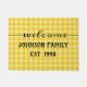 Trendy Yellow Buffalo Karo Farmhouse Welcome Doormat verfügt über einen gelben und orangefarbenen Büffel-Karo, eine stilvolle Schrift-Typografie " welcome" , eine moderne Vorlage für Familienname & etabliertes Jahr .Ein perfektes rustikales Design für Wohngestaltungen wie Bauernhof, Land & rustikalen oder Vintagen Stil.Auch ein großartiges Geschenk für Neuvermähte.Bitte klicken Sie auf den Personaliber-Button, um Ihren individuellen Stil. Familienname und festes Jahr.