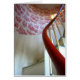 Die Treppe ist mit einer hübschen, rot-weißen Tapete geschmückt