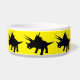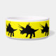 Diese Tierschale hat eine Silhouette von Triceratops darauf.