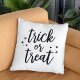 Feiern Sie Halloween im Stil mit diesem "Trick or treat"-Kissen mit modernen schwarzen Schriftzeichen und Sternakzenten auf weißem Hintergrund.
