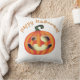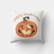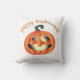 Ein lustiger Kürbis mit einem Lichteffekt innen. Anpassbare Halloween-Nachricht. Ein einfaches und glückliches Kissen zu Halloween!