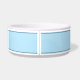 Desteis originelle Cartoon-Illustration einer niedlichen Tricolor-Farbe Cavalier King Charles Spaniel züchten Hundekopf. Es gibt auch einen personalisierbaren Textbereich für einen Namen im blauen Schriftart. Hinter dem Hund steht ein blau-farbiger Schimmer. Die gesamte Hintergrundfarbe ist hellblau mit dunkelblauen Rändern an der Oberseite und am Boden.