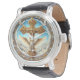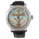 This ornate watch features a radiant golden cross, symbolizing the Holy Trinity, set against a serene sky with clouds. Two doves, representing peace, flank the cross. The watch border is intricately decorated, adding to its reverent and artistic beauty. Perfect for adding a touch of spiritual elegance to any space.