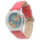 Uhr, Kinderuhr aus Edelstahl mit rosa Lederarmband