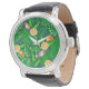 Uhr, Vintage Männeruhr mit schwarzem Lederarmband