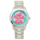 Tropenrosa Hibiskus Türkis Blau Armbanduhr