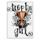 Niedliche Geschenkideen für Mädchen. Eine Trophäe mit karierten Fahnen und einem Herz- und Blume-Design und das Sprichwort Trophy Girls ist auf T - Shirt, Sweatshirts, Tasse, Tasten, Aufkleber, Kappen, Schürze, Schlüsselketten, Karten und mehr für Frauen und Mädchen. Großartige Geschenke für Rennfans.