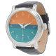 Wenn Sie sich selbst als stilvoll betrachten, würden Sie eine Uhr gewollt, die Ihrem Modebewusstsein entspricht. Nun, sehen Sie nicht weiter. Diese Uhr zeigt klassische weiße Ziffern auf einem orangen, aquamarinen und aqua Hintergrund.