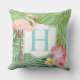 Tropical Aqua Monogram Pink Flamingo und Blume Kissen