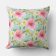 Das Design der Kissen im tropischen Stil zeichnet sich durch eine lebhafte Blume aus rosa, gelben und weißen Hibisken mit Aqua-Meeresblau/Grün-Hintergrund aus.