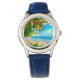 Kinderuhr aus Edelstahl mit blauem Lederarmband
