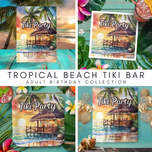 Tropical Beach Tiki Bar Birthday Designt von KL Stock