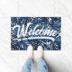 Tropical Blätter Navy Blue White Script Willkommen Fußmatte