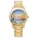 Schöne goldene Uhr mit Tropical Breeze Goa Beach Design - inspiriert durch die Cover-Kunst für unseren Stoneygate Remix unseres Songs Tropical Breeze