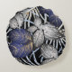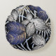 "Tropical Class" ein atemberaubendes Blumendesign in Blau, Silber und Gold. Ein schönes, weiches Muster auf einem runden Kissen