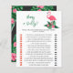 Das Design der Baby-Dusche ist mit rosa Flamingo mit üppig grünen Palmenblättern und tropischen Hibiskus-Blume ausgestattet. "Aloha Baby" Ein tropisches Blumenmuster mit schwarzer Hintergrundfarbe zieht die Rückseite der Karte hoch.