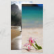 Rosa Stargazer lilly in Sand und Mädchen spazieren entlang des sonnigen abgelegenen Strandes. Hawaii 2009