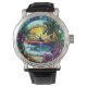 Tropical Sunset Oasis Vibrant Beach Wall Armbanduhr