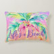 Dieses Akzent Kissen ist wirklich schön! Tropische Schattierungen eines Sonnenuntergangs auf der Insel sind ein Sommerprodukt. Fügen Sie eine farbenfrohe Palme und Ihren Namen oder Nachricht und es wird der schönste Strand Akzent im Freien. Farbige Pastelltöne mit weichem Wasser.