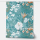 Bring a refreshing tropical vibe to your space with this stunning floral pattern featuring white hibiscus flowers and palm leaves over a vibrant turquoise blue background. The warm terracotta orange accents create a beautiful contrast, making this hand-drawn botanical design perfect for beach house decor, summer accessories, or sophisticated island-themed stationery.