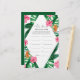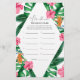 Tropical Palms Watercolor Bridal Dusche Einladung. Das Design besticht durch ein elegantes Bouquet mit klassischen Strandfarben und Blume, darunter rosafarbener Hibiskus, orangefarbene und blaue Paradiesvögel, grüne Vegetation und dunkelgrünes Palmenblatt.