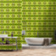 Ein sich spiegelndes, sich wiederholendes Muster, das durch die üppig grünen Blätter von Palmen inspiriert wird und von strahlender Sonne durchstrahlt wird, schafft ein faszinierendes visuelles Erlebnis. Dieses Design zeigt eine harmonische Symmetrie, die ästhetisch ansprechend und komplex zugleich ist. Die Anordnung bildet eine Diamantform, die ein einzigartiges Gefühl von Tiefe und Textur verleiht, das an die eigenen komplexen Entwürfe der Natur erinnert. Die lebhaften grünen Farbtöne, die durch das Sonnenlicht hervorgehoben werden, erinnern an ein tropisches Paradies, das eine erfrischende und ruhige Atmosphäre in jeder Umgebung schafft. Das Zusammenspiel von Licht und Schatten steigert die Dimensionalität noch weiter und macht sie zu einer vielseitigen Wahl für moderne und traditionelle Dekoration. Dasselbe Design ist in drei weiteren Mustergrößen erhältlich, was es perfekt macht, um Räume, temporäre Räume, Bücherregale und eine Reihe von Handwerksprojekten zu modernisieren.