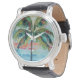 Uhr, Vintage Männeruhr mit schwarzem Lederarmband