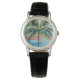 Uhr, Klassische Damenuhr mit schwarzen Lederarmband