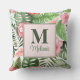 Tropisch rosa Blume und Monstera Monogram Kissen