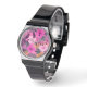 Tropisch-rosa Hibiskus - Blumenmuster mit Blätter Armbanduhr