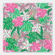 Tropisch-rosa-weiße Blume mit Blätter aus Palmen, die das Wesen des tropischen Paradieses mit seinen lebhaften Blume in Rosa und Weiß und den Blätter der Palmen prägen. Das Design strahlt ein erfrischendes und exotisches Ambiente aus, das perfekt dazu geeignet ist, jedem Raum eine Touch tropischen Glücks hinzuzufügen.