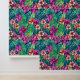Verwandeln Sie jeden Raum in einen tropischen Inselurlaub mit diesem wunderschönen, lila, orage und grünen nahtlosen Muster aus kleinen Hibisken und tropischen Blume Set gegen dunkelgrünes und hellgrünes Blattwerk. Dieses schicke und zeitlose Design ist ideal für Zuhause und Büroanwendungen und eignet sich auch für Hotels, Lodges, Resorts, Restaurants und Bars. Erhältlich in glatter und texturierter Ausführung (für raue Wände)