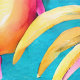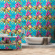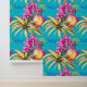 Ideal für jeden Strandbetrieb; Küstensterrant; Hotel; Lodge; Resort und Chalet. Dieses durchgängige Muster zeigt tropische Blätter, über denen rosa Blume und eine runde Inselfrucht vor einem lebendigen, türkisblauen Hintergrund Set erscheinen. Bringen Sie den Strand drinnen, mit diesem eleganten und trendigen Hawaii inspiriert leicht zu schälen und Wand-Wandgemälde, ideal für glatte und strukturierte Wände.