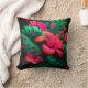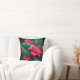 Kopfkissen mit Darstellung tropischer Blume und Blätter in den Farben Grün, Rosa und Orange.