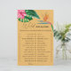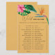 Diese farbenfrohe tropische Blumen und tropische Farbe Hintergrund Brautdusche Einladung. Das Design besticht durch ein elegantes Bouquet mit klassischen Strandfarben und Blume, darunter rosafarbener Hibiskus, orangefarbene und blaue Paradiesvögel, grüne Vegetation und dunkelgrünes Palmenblatt.