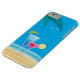 Eine Illustration eines tropischen Cocktails in hellrosa und blau auf einem Strandhintergrund mit Palmen-Blätter und Möwen, dekorieren dieses iPhone 6/6s Plus Case, das uns an warme, sonnige Ferien erinnert.